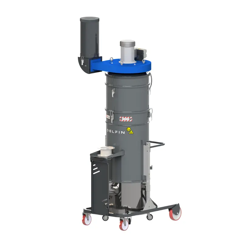 Industrijski zbiralnik prahu je rešitev za sesanje lebdečega prahu, ki ga je treba nevtralizirati, ker je prevoden in eksploziven (npr. aluminijasti prah). Posesani material se zbira neposredno v posodo opremljeno z inertnim sistemom kopeli. Tri stopnje filtracije s pomočjo separatorja kapljic, razpršilnika iz nerjavečega jekla in hidro-oleofobnega filtra zagotavljajo absolutno varnost pri sesanju več vrst reaktivnih prahov. ATEX različica Z22 skladna z direktivo EN 17348.
