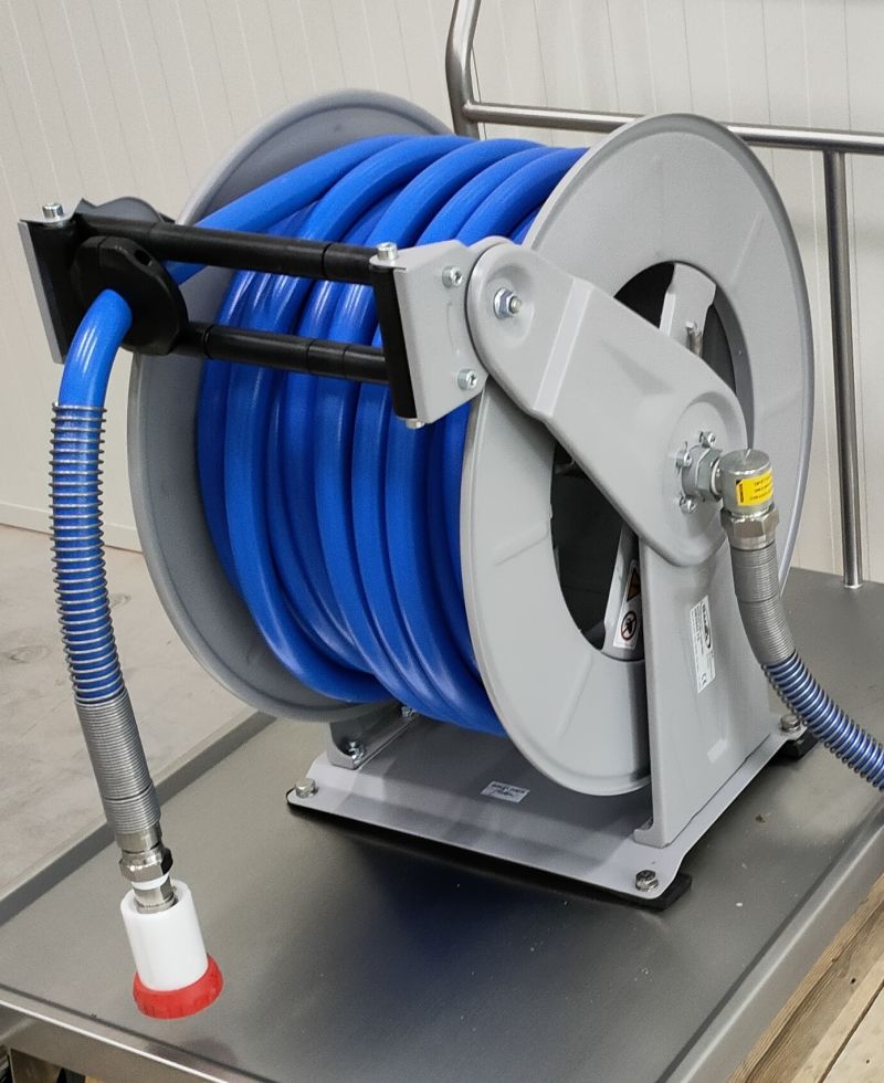 Automatic hose reel makes unwinding hoses fast, safe and easy regardless of their length. In addition, the reel protects the hoses from damage that can occur due to improper storage. They are intended for transferring all types of liquids and for many work areas, such as car washes, service workshops, industry, construction, agriculture, food industry, butchers and slaughterhouses, etc.